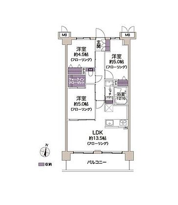 コンパクトながらクローゼットも備わった5.0帖の洋室は寝室は勿論、書斎や趣味のお部屋としても使えそう