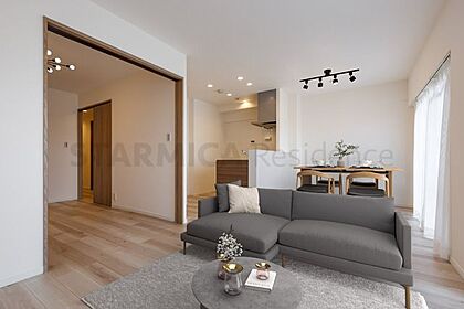 落ち着いた雰囲気に包まれながら、ゆったりと家族団らんのひとときを※家具等はCGによるインテリアイメージです。家具の設置サイズを保証するものではなく、TV配線には配慮しておりません。