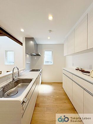リビングを見渡せる対面式キッチンは、家事をしながらご家族と会話したり、テレビを見ながらと、毎日の家事を楽しく行えます。