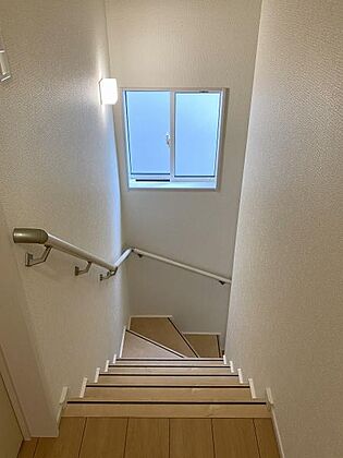階段には手すりがついているので昇り降りが安心です。窓があるので日中の明るさも差し込みます。