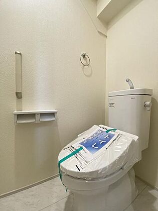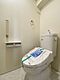 立ち上がりに便利な手すり付きのトイレ。温水洗浄便座です。