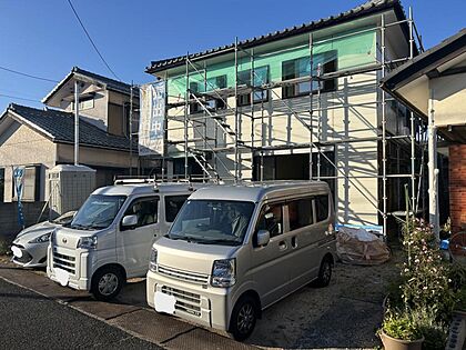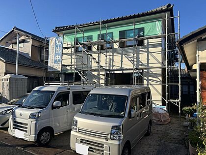 【リフォーム中】建物を一部解体して並列3台駐車可能な土間コン駐車場を作成します。建物前面は外壁上張りを行います。