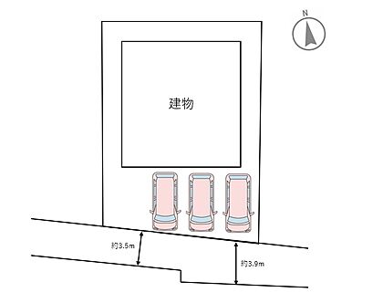 【前面道路】前面道路は幅員3.5m、3.9mです。約1.44平方メートルのセットバックが必要です。