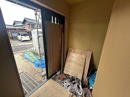 【リフォーム中】玄関扉は引き戸タイプの新品に交換します。
