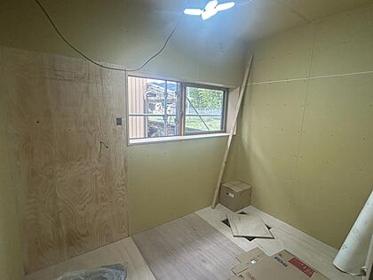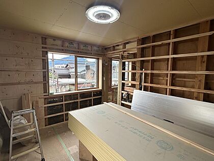 【リフォーム中】2階約6帖洋室になります。床はフロア上張り、壁天井は石膏ボード施工、クロス張りにしていきます。