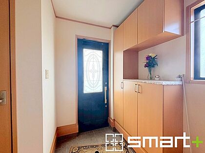 〜穏やかな陽の入る玄関〜 ・玄関ドアのガラス部分に加えてシューズボックスの間に窓を設ける事で穏やかな陽の入る玄関に。 ・ご家族やご来客を明るい空間で出迎えてくれます。