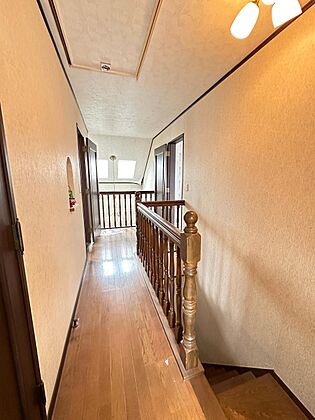 2階廊下です。奥側吹抜あり、開放的で明るい空間です♪