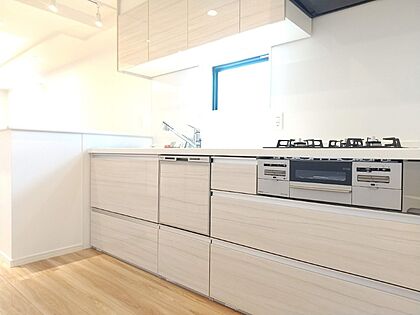 作業スペースも広々のお料理もしやすいキッチンです。三口コンロでお料理もはかどります!