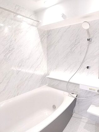 白を基調とした清潔感のあるバスルームです。お仕事で疲れた体をいつでも温かなお風呂が癒してくれます。