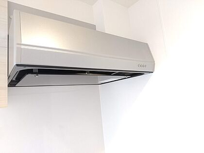 すっきりとした換気扇。照明付きでお料理中も明るく照らしてくれます。