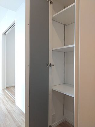 大容量の収納でフライパンや食器などキッチン用品をしまえます。