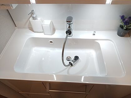 朝の身支度もしやすい広めの洗面台です。シャワー付きなのはうれしいですね!