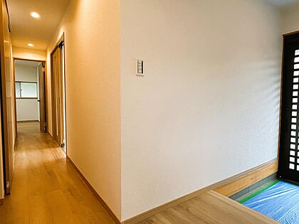 【リフォーム中・玄関】玄関は、壁・天井のクロス張替え、床のフローリング、ポーチタイルの重ね張り、シューズボックスの新品交換をすることで明るく気持ちの良い空間に生まれ変わります。