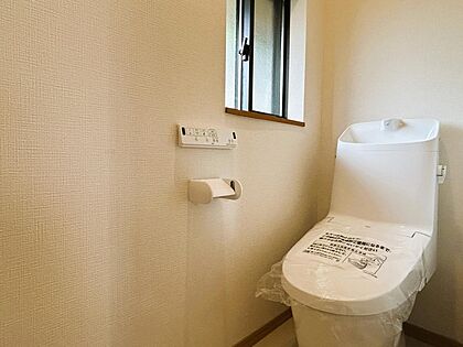 【リフォーム中・トイレ】トイレはLIXIL製の温水洗浄機能付きに新品交換します。キズや汚れが付きにくい加工が施してあるのでお手入れが簡単です。直接肌に触れるトイレは新品が嬉しいですよね。