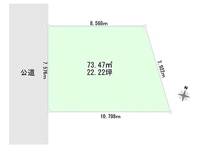 | 土地面積/坪(坪単価) | 73.47m2/22.26坪(188.60万円) | 代表的な接道 | 一方 公道 南西 6m ※詳細は備考欄をご確認ください |