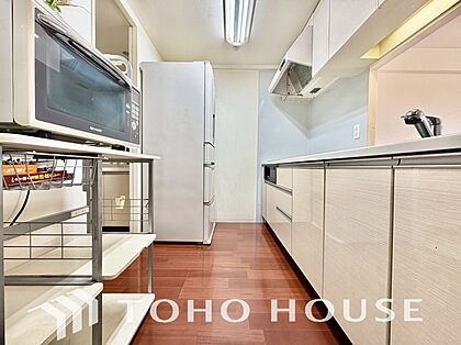 キッチンの収納は、デッドスペースになりやすい箇所を有効活用できる、スライド式収納を採用しました。