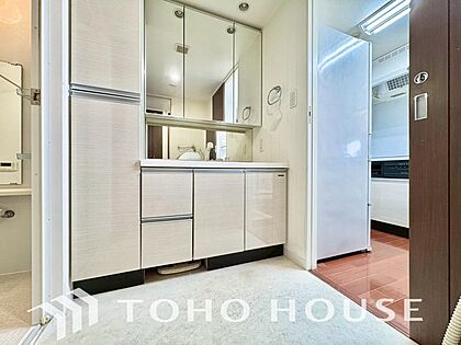 お家の中でも特にプライベートスペースとなる洗面所は、洗濯場所と浴室を同じ空間でまとめております。