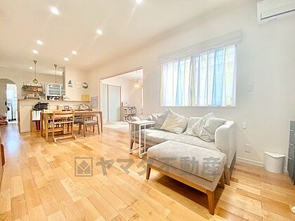 18帖。家族が集まる開放的なリビング。思い思いの時間を過ごしたり食事をしたり、素敵な団らんの場になりますね。