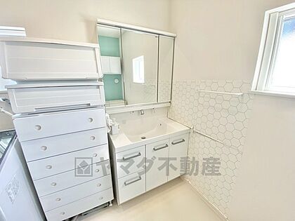 三面鏡裏収納付き洗面化粧台です^^