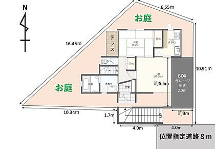【接道】 一方 ( 私道 位置指定 南 8m ) 売主の契約不適合責任免責売主の境界明示義務免責※地積測量図はございます。別途付属建物として車庫:鉄筋コンクリート造陸屋根平屋建17m2ありサイズ(奥行5.5m、間口3.0m、高さ2m) |