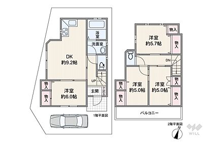 物件の駐車スペース。南西角地のため、車の出し入れがしやすい設計となっております。
