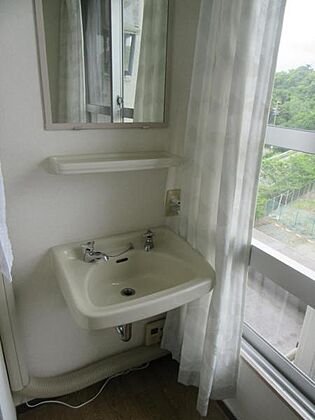少しレトロな洗面台。朝日を浴びながら歯磨きができます。