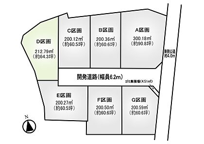 区画図:D区画:敷地ゆとりの約64.3坪!