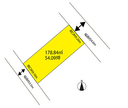 土地面積/坪(坪単価) 178.84m2(登記簿)/54.19坪(36.50万円) 代表的な接道 二方 公道 北東 4.6m、南西 3.5m