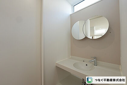 おしゃれな洗面台付、鏡もおしゃれです。
