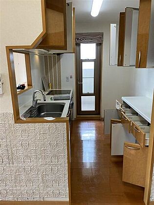 ※販売対象に家具・調度品は含まれません。IHクッキングヒーターが搭載されたキッチン。配膳がしやすいカウンター付きです。