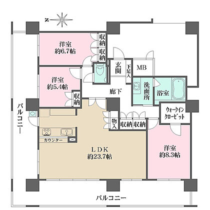 ※販売対象に家具・調度品は含まれません。LDKは広々約23.7帖。引き回しバルコニーが採用され、陽当り・通風良好です。