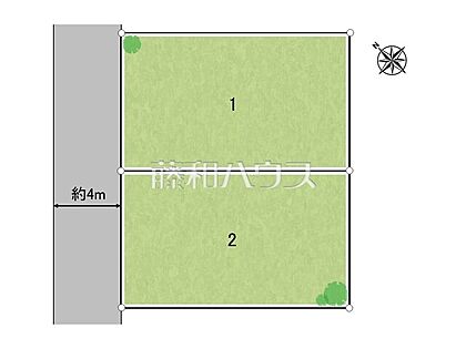 【1号地】全体区画図 【昭島市拝島町4丁目】 綺麗な整形地のため、思い描いているイメージをカタチにしやすい土地