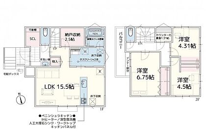 間取り図/3SLDK+SCL+書斎+カースペース2台