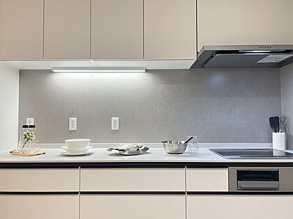 流行りの?型キッチンを採用!?調理台の上に換気がなくなるので、LDKが広く感じられます。