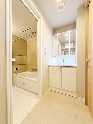 【洗面化粧台】人気の三面鏡ドレッサータイプ♪鏡裏には便利な収納スペース♪