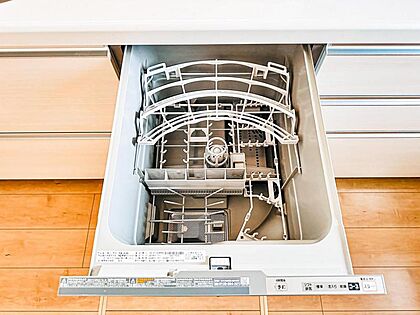 【ビルトイン食洗機】洗浄から乾燥までボタン一つで完結する食洗機付き。大変な洗い物がぐっと短く済みます!