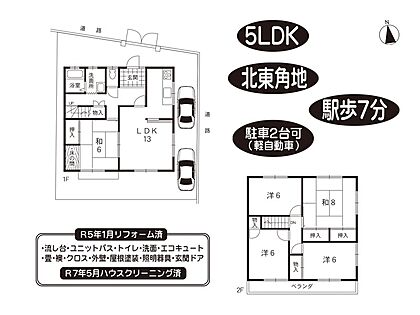 駅徒歩7分/北東角家/令和7年5月ハウスクリーニング実施/令和5年1月リフォーム実施(流し台・ユニットバス・トイレ・洗面・エコキュート・畳・襖・クロス・外壁・屋根塗装・照明器具・玄関ドア)