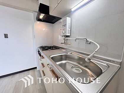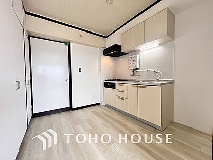 シンプルな部屋の雰囲気に溶け合うナチュラルキッチン