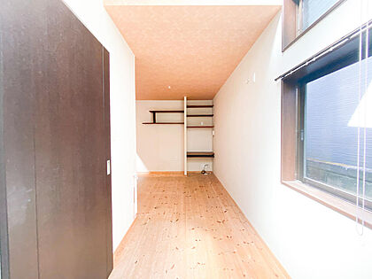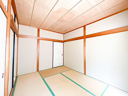 2階和室6.0帖。西側壁一面が押入になっておりますので、収納が充分量ございます。
