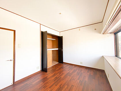 2階洋室6.0帖。北東出窓が広めに設けてあり、とても明るいお部屋です。床色が落ち着いており、主寝室にもぴったりだと思います。