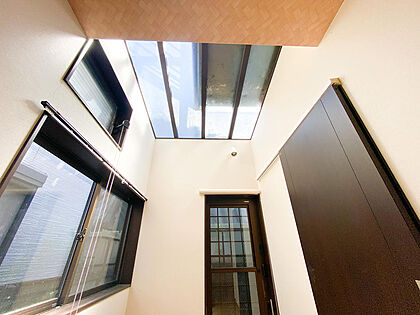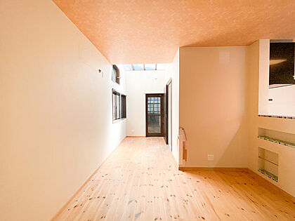 リビングスペースの天井は、トップライトになっており、開放感と明るさを感じられ、スタイリッシュな空間にもしやすいですね。