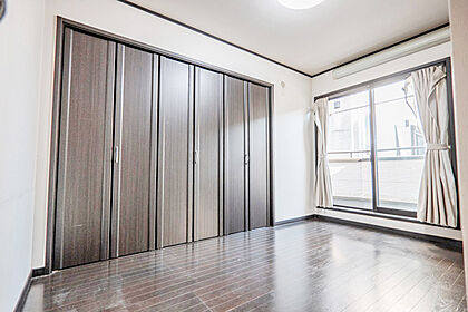 2階東側居室はダークウッド床と大きな窓が特徴です。収納も充実しています。