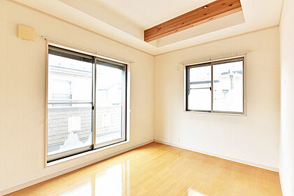 東側洋室約6帖はバルコニーに面した開放感のあるお部屋です。二面彩光で開放感のある明るい室内です。