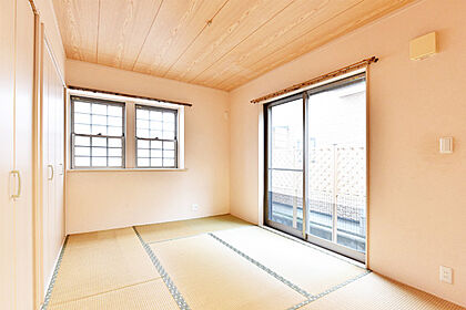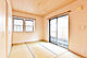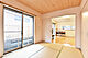 約6帖の和室は2面採光で通風良好です。引戸を開放することでリビングと一体的に使えます。