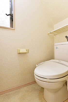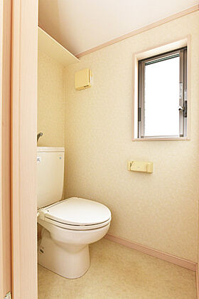 2階トイレには窓があり明るく開放的です。窓から外の風を取り込んで換気もできます。