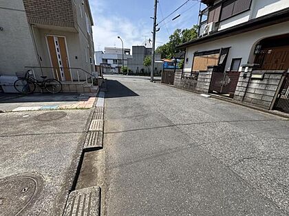 前面道は6m 大通りから1本入った所にあるので、お子様がいても安心です