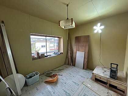 •  【リフォーム中】2階南西側和室6帖です。天井・壁クロス張り床はフロアタイル使用で洋室に変更します。