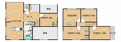 •  【RF間取り】和室の多い6DKの間取りを5LDK+半掘り込み車庫付きの住宅に変更します。水回りも新品に交換して住みやすい住宅に生まれ変わります。