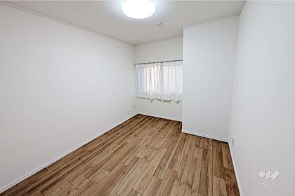 西側洋室約6帖です。2025年7月にリフォーム済み。バルコニーに面しており、採光・通風良好です。エアコンの設置が可能。6帖以上の広さを確保しているので、家具の配置がしやすいです。