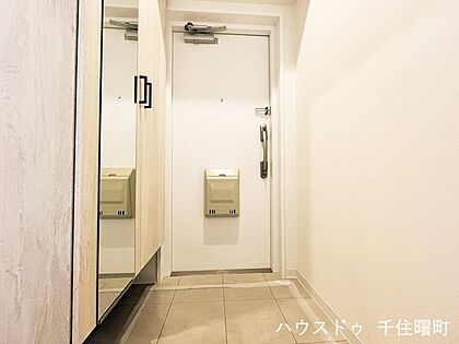 玄関には姿見付きのトールタイプシューズボックスが設置されています。外出前に身だしなみチェックが出来ます♪